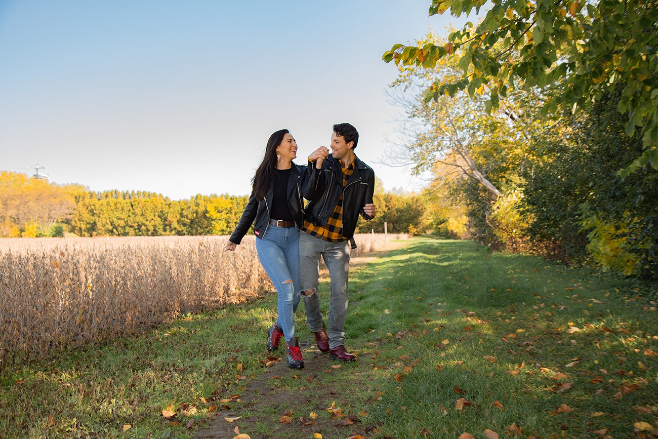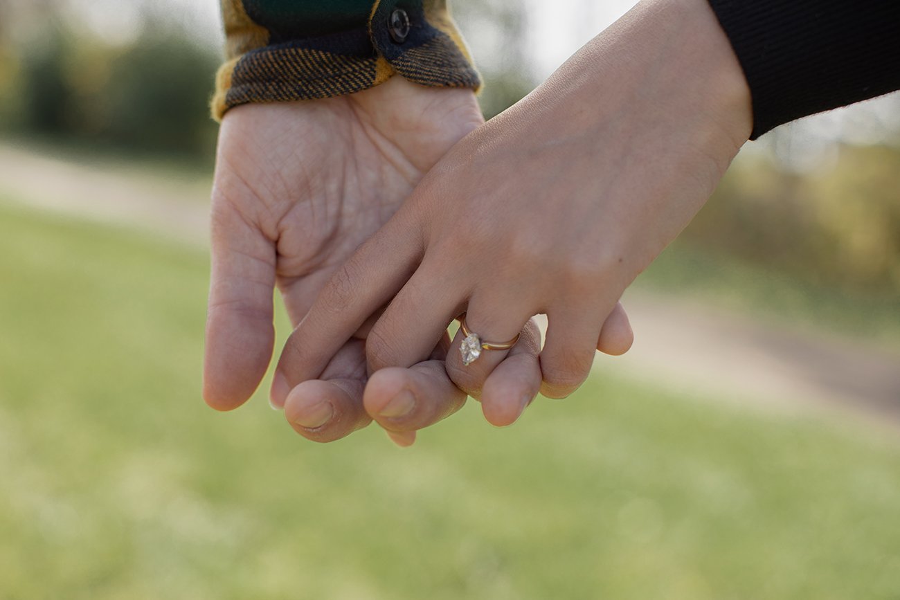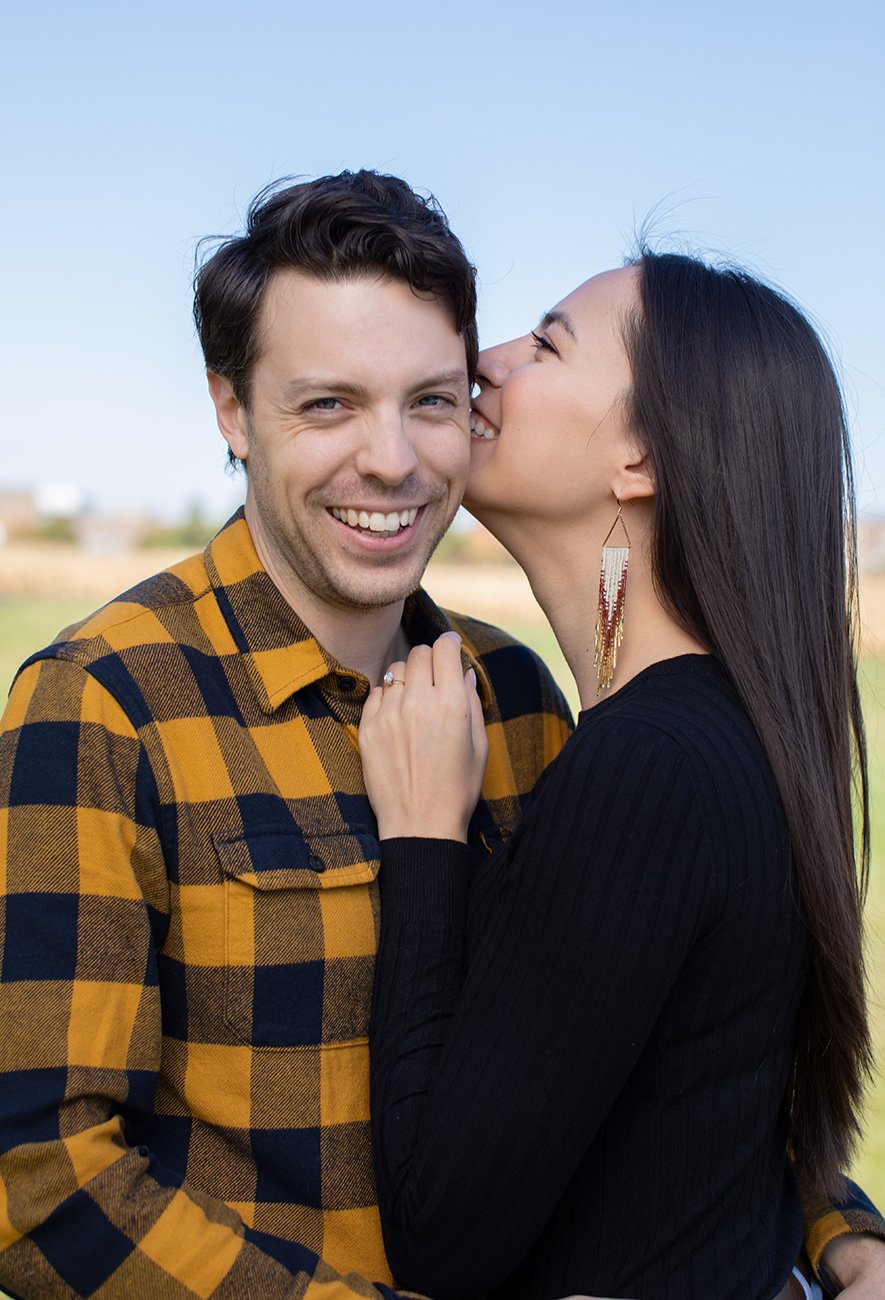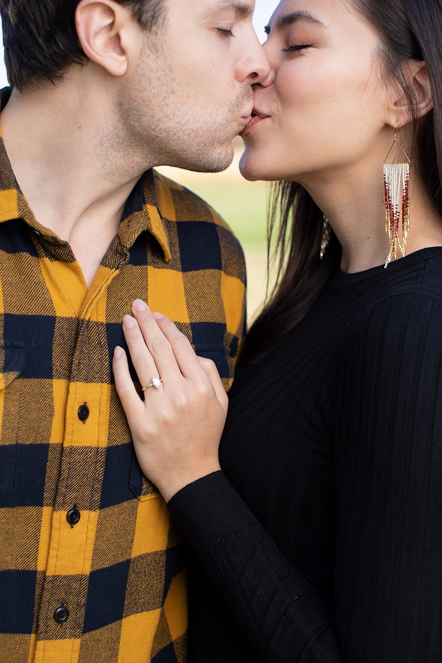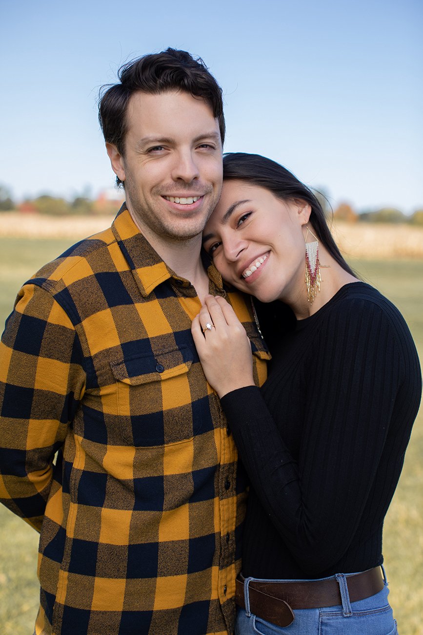 And of course we took some engagement ring photos. I love detail shots in engagements and weddings. They are so fun and timeless. I also loved that Max was wearing a yellow plaid shirt. It was a great complement to the autumn colours and perfect place for Karis to rest her hand on to bring a pop of colour.