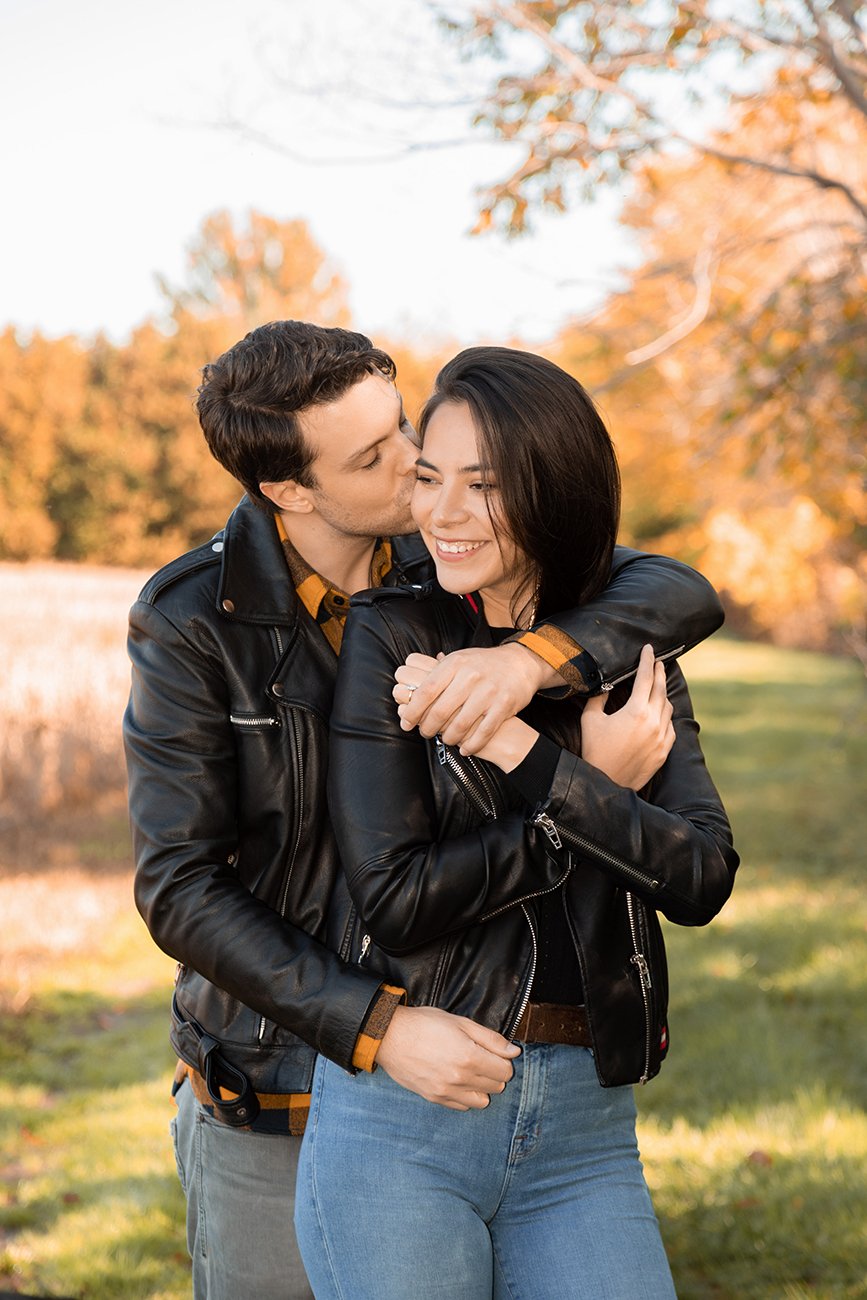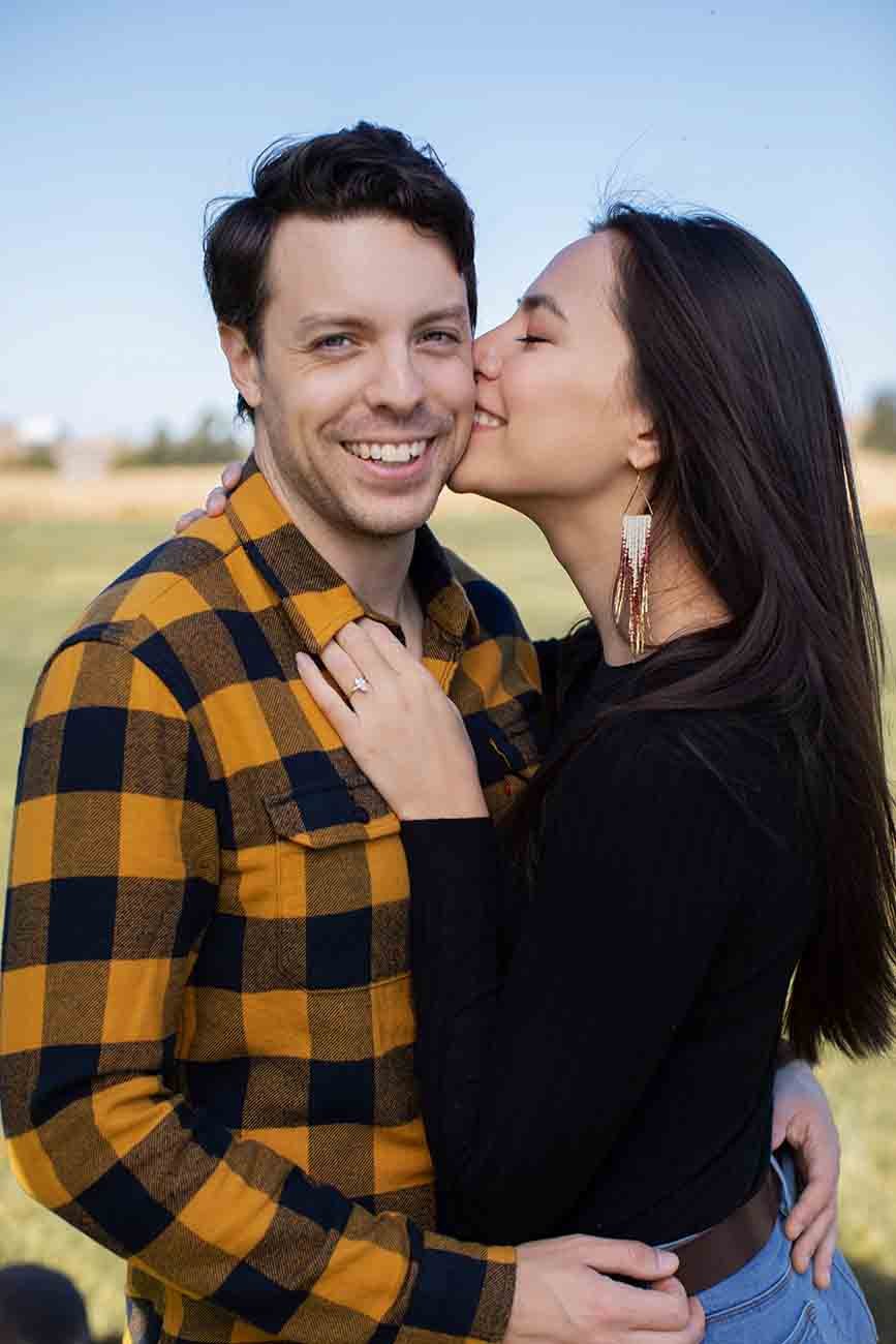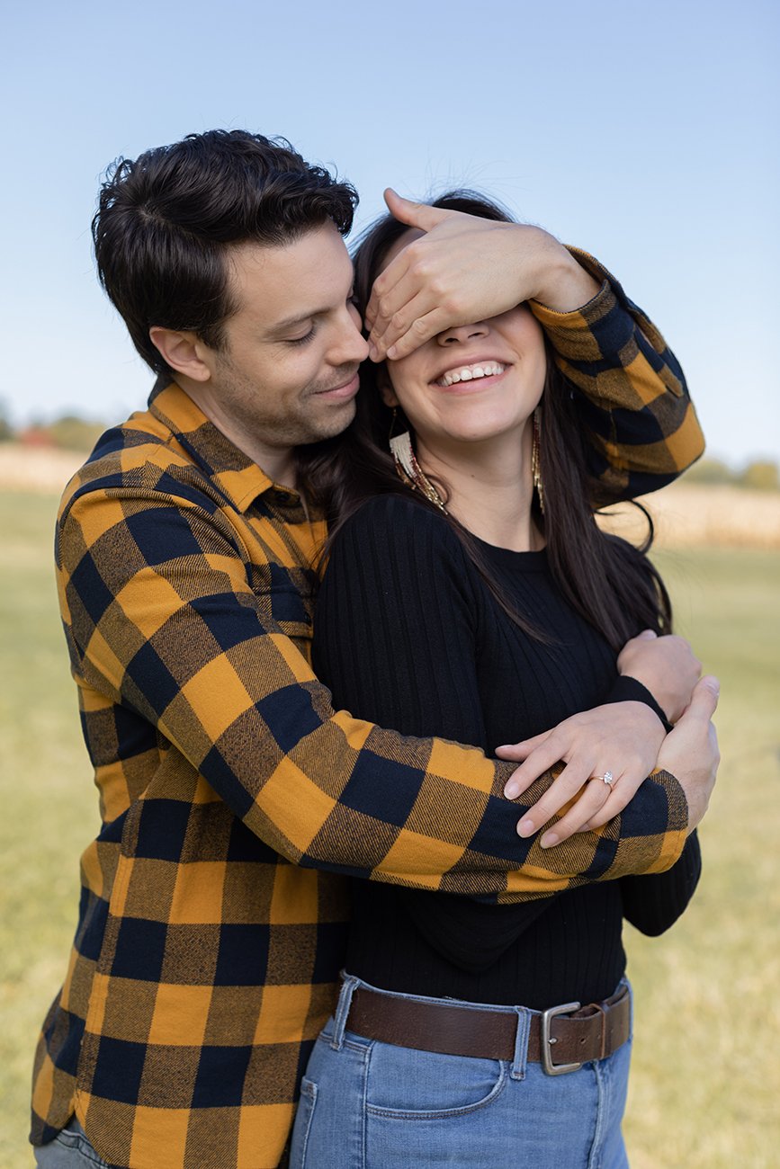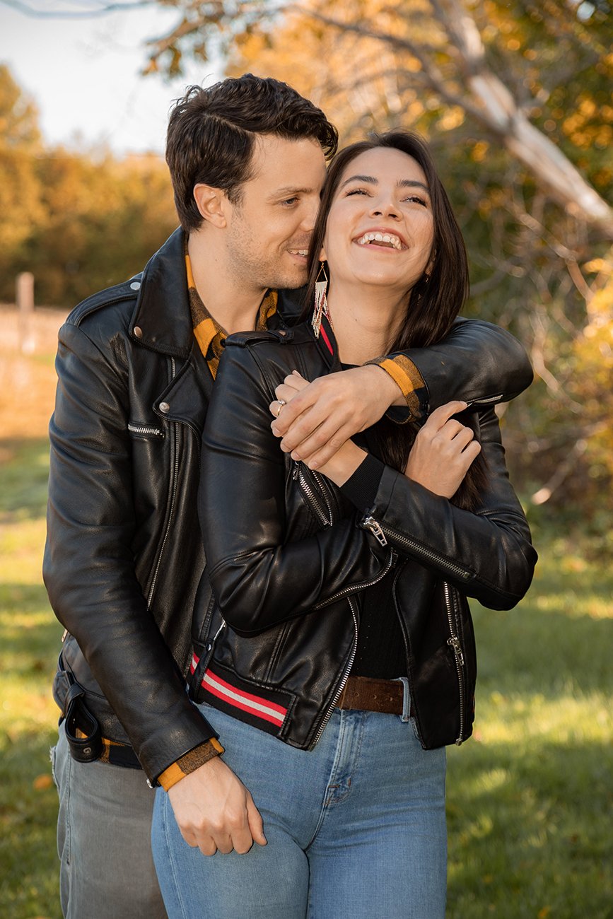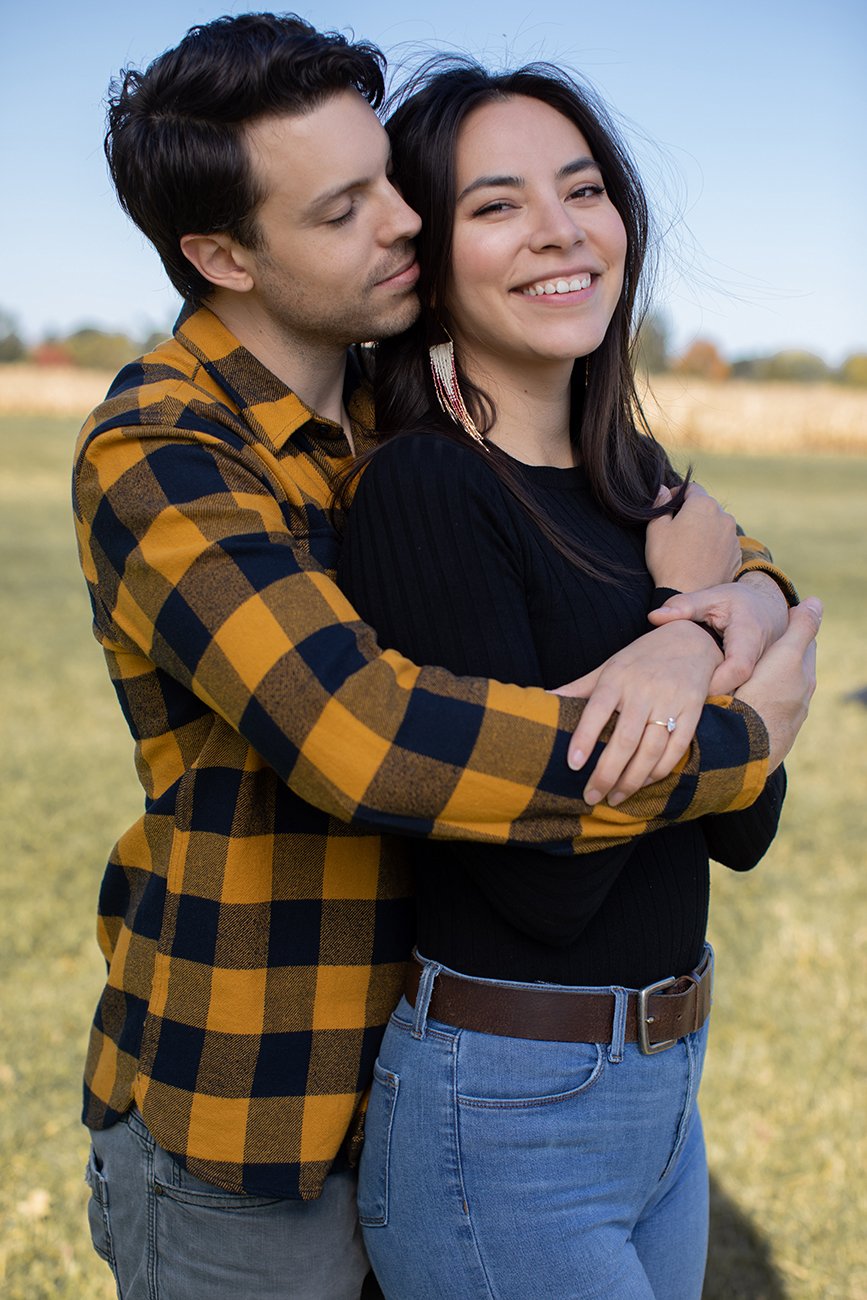 And of course we took some engagement ring photos. I love detail shots in engagements and weddings. They are so fun and timeless. I also loved that Max was wearing a yellow plaid shirt. It was a great complement to the autumn colours and perfect place for Karis to rest her hand on to bring a pop of colour.