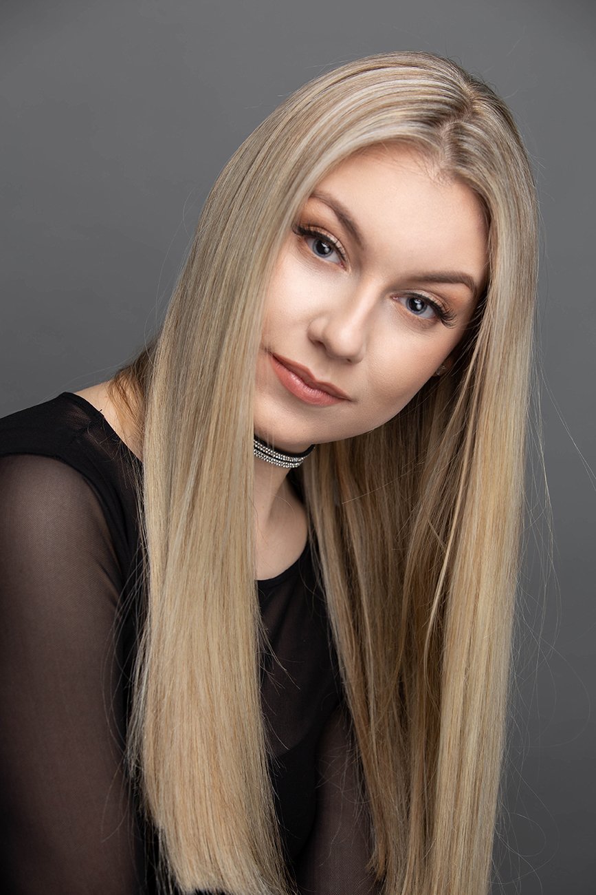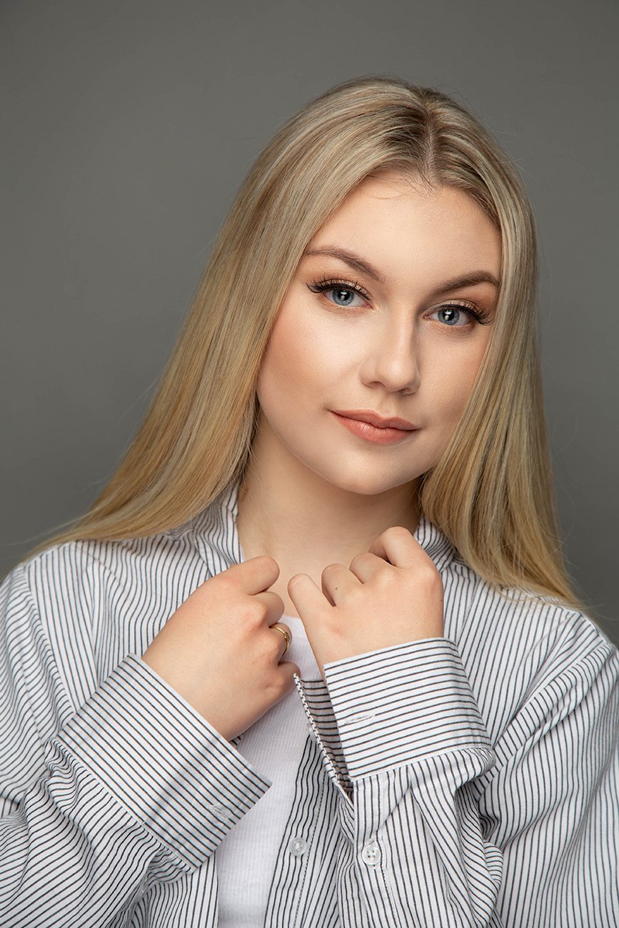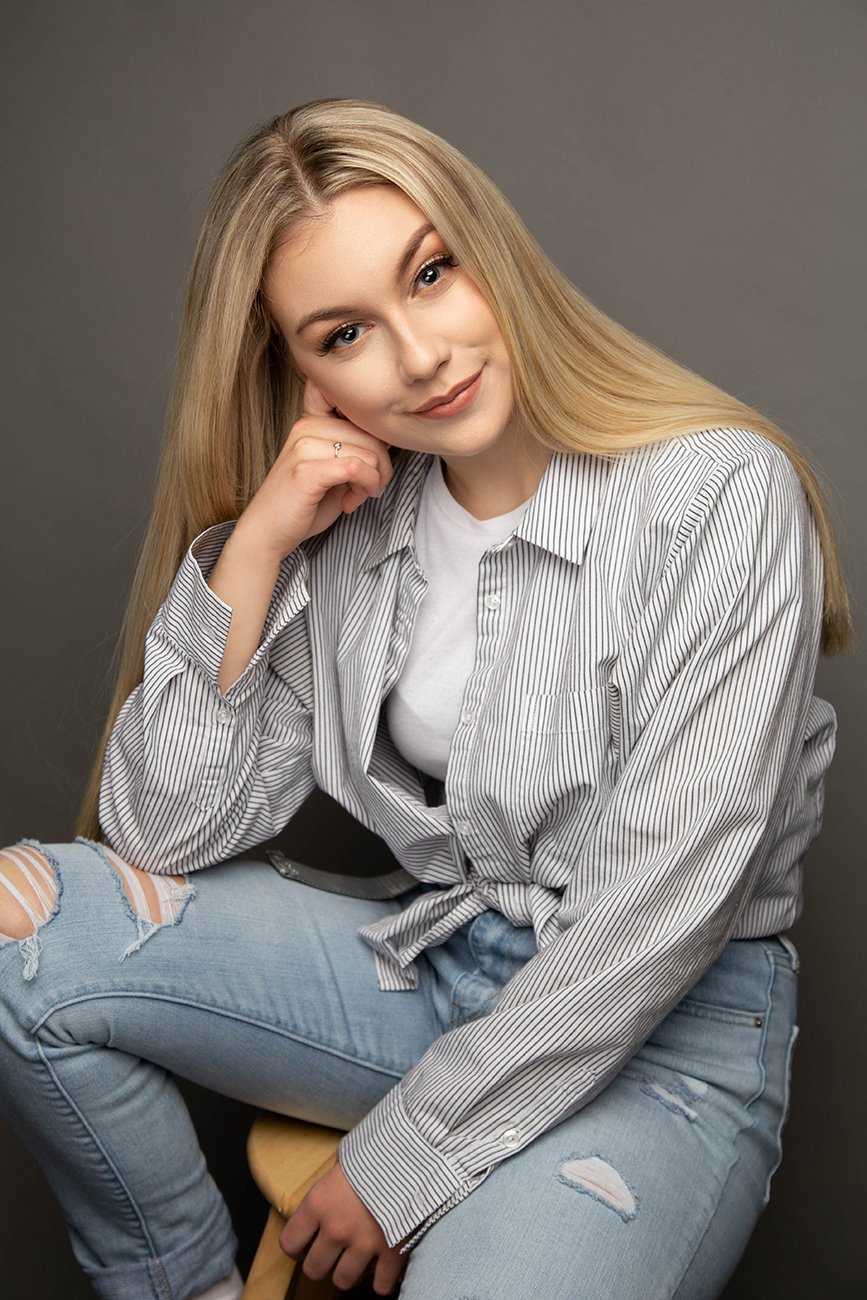 I picked a grey background because I didn’t want the background to be distracting in any way. The shoot is about the model not about making the portrait artsy. Sometimes it’s best to keep it simple.