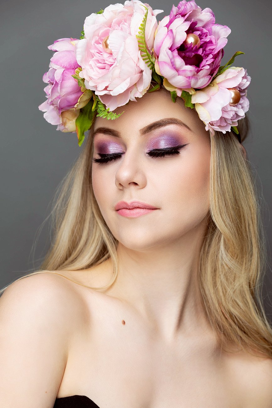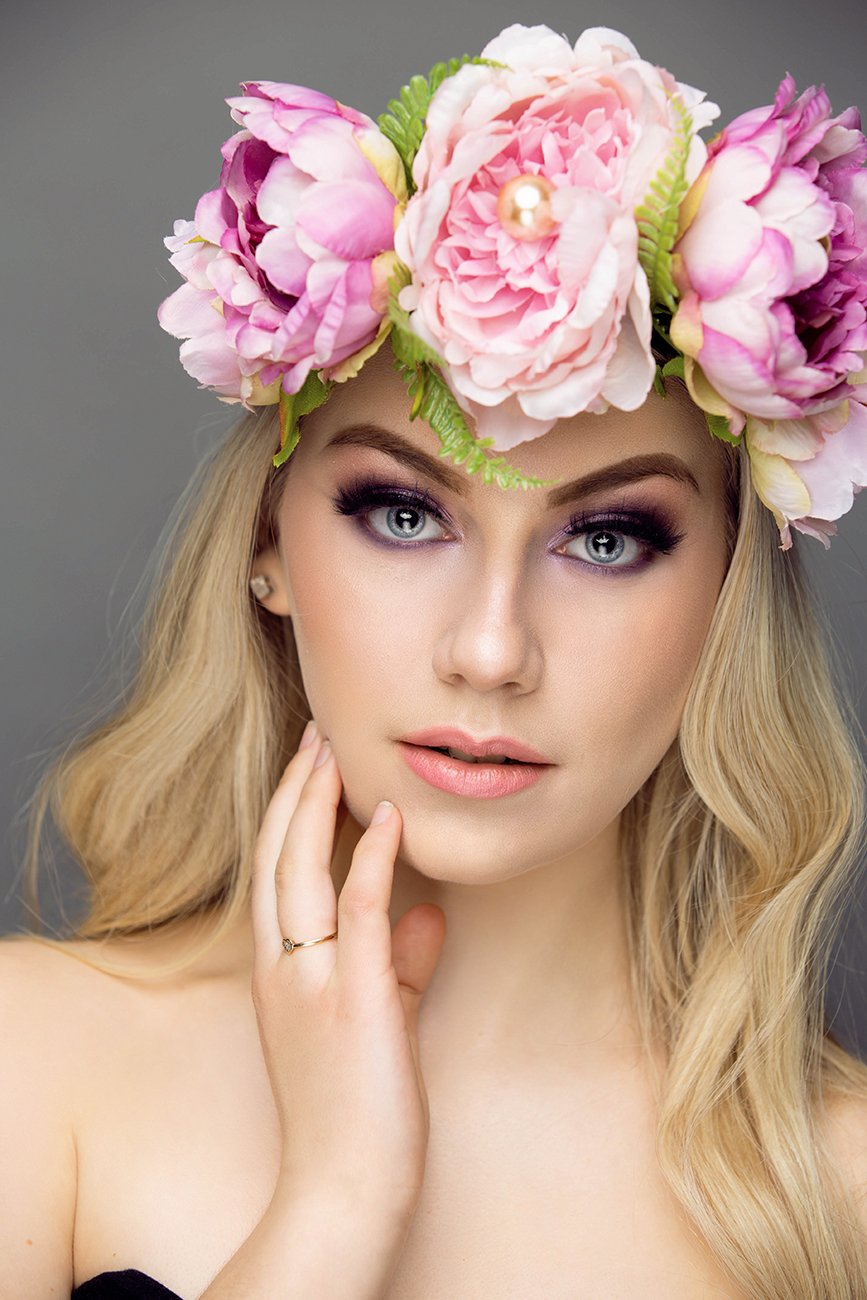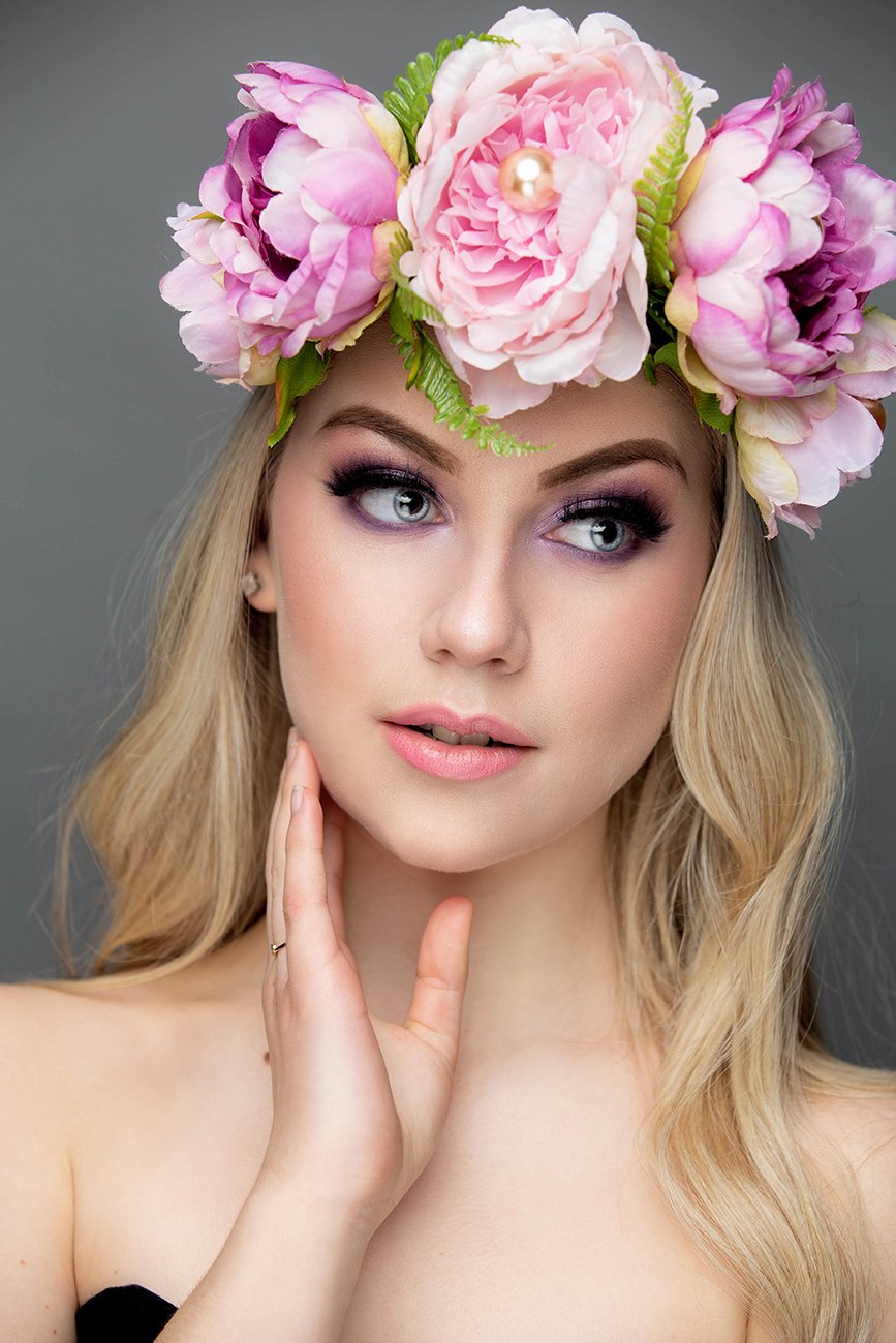 As you can see, Marissa is a natural beauty with a very beautiful smile. She was a pleasure to work with. Before the shoot, Carolyn asked her if it would be okay to do a glamour look after doing her portfolio photos. Carolyn had made these beautiful flower crowns and wanted a chance to doll Marissa up. They agreed and we had some fun with taking some beauty shots after. Check them out.