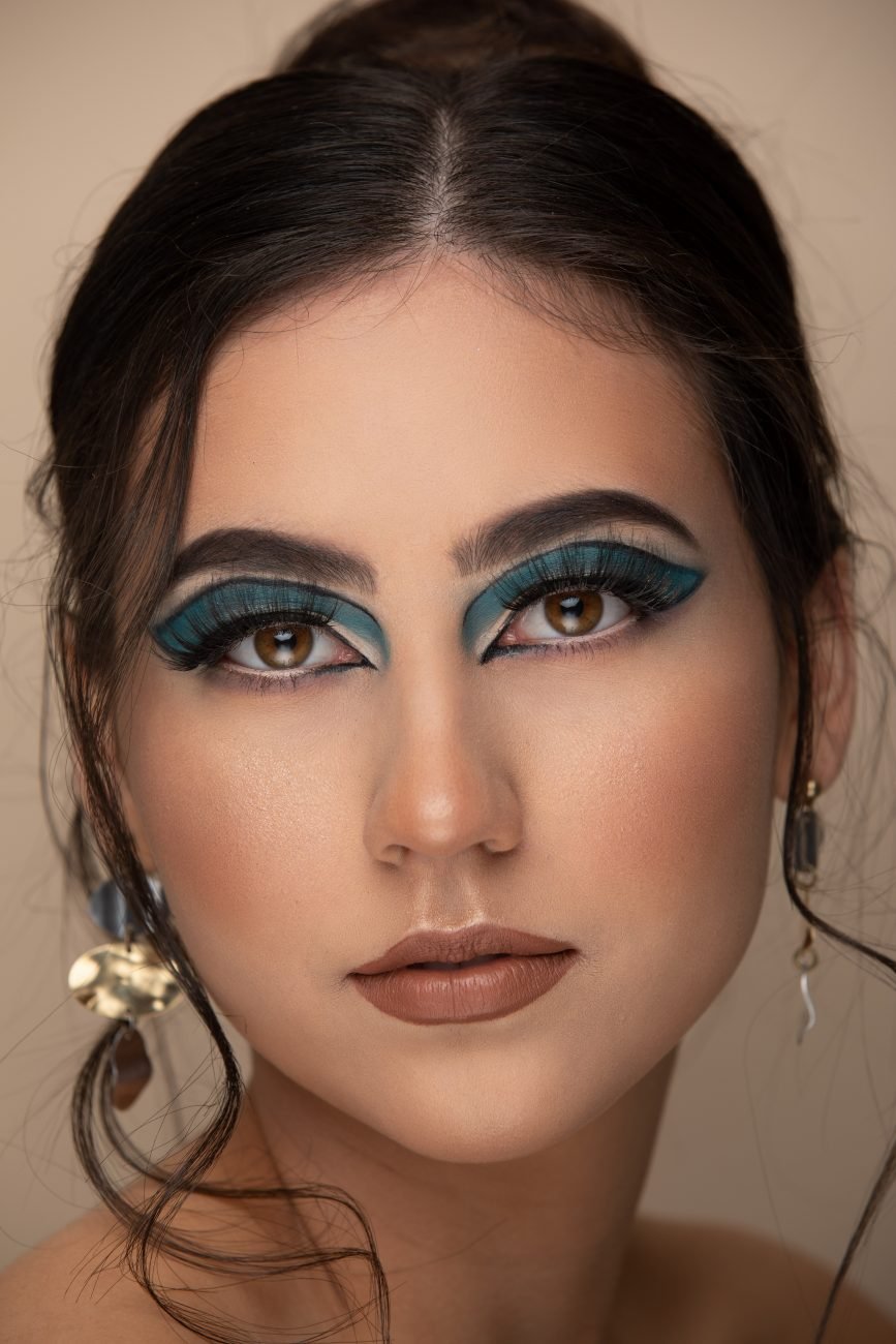 Our first model was Margaux from Angie’s Models. Fatima did both the hair and makeup. We wanted bold blue eye shadow with a nude/purple lip. Hair down and softly falling out of a bun. Fatima did an amazing job. Earrings for both looks were from a local jewellery designer, Mila, who owns Vardi Design. Her earrings are elegant and surprisingly super light weight.